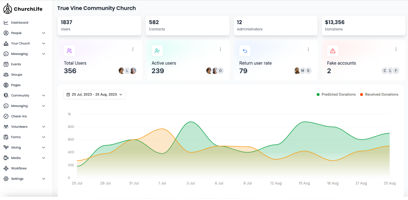 See everything in one place. Manage people, engagement, content, and giving without switching between multiple tools.